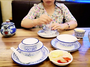 金菊路上某菜馆里面提供的消毒碗筷。