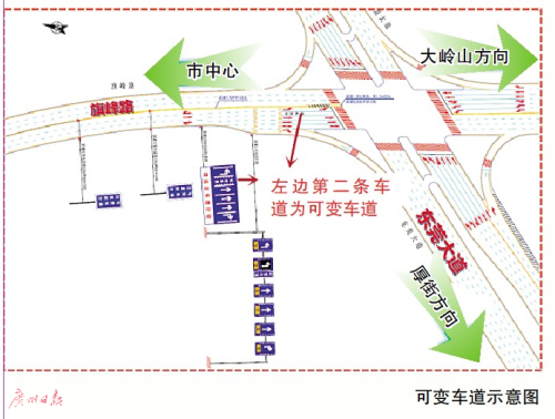 原标题:东莞旗峰路明日试行潮汐车道