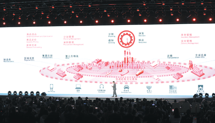 11月7日,乌镇,世界互联网领先科技成果发布活动现场,京东集团副总裁、京东集团大数据与智能供应链事业部总裁裴健发布《智能供应链技术服务平台》。新京报记者 王飞 摄