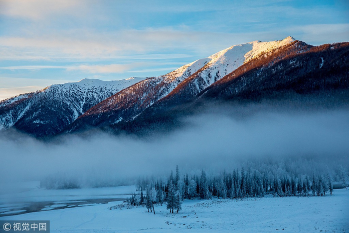 冬日里,阿勒泰的喀纳斯变成一片白雪皑皑的冰湖,徒步穿越是当地的一大体验。此外,阿勒泰是人类滑雪的起源地之一,至今仍留存着延续千年的哈萨克族毛皮滑雪板滑雪传统,游客也可以体验毛皮滑雪,同时也可以体验现代化的直升机越野滑雪、以及乌伦古湖的冬捕活动。