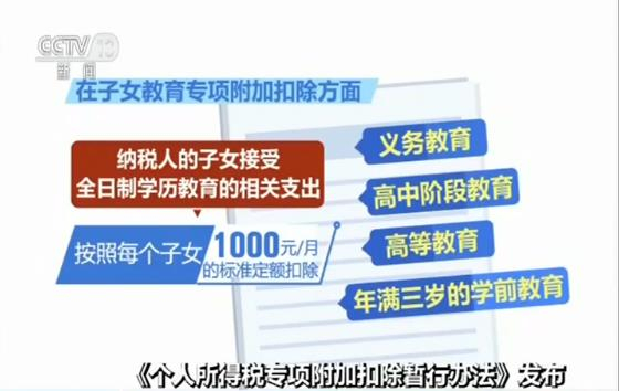 央视网消息:昨天(22日),《个人所得税专项附加扣除暂行办法》公布,根据暂行办法,个人所得税专项附加扣除包括子女教育、继续教育、大病医疗、住房贷款利息或者住房租金、赡养老人等6项。从明年开始,我国在“幼有所育、学有所教、劳有所得、病有所医、老有所养、住有所居、弱有所扶”上,进一步加大了财税支持力度。