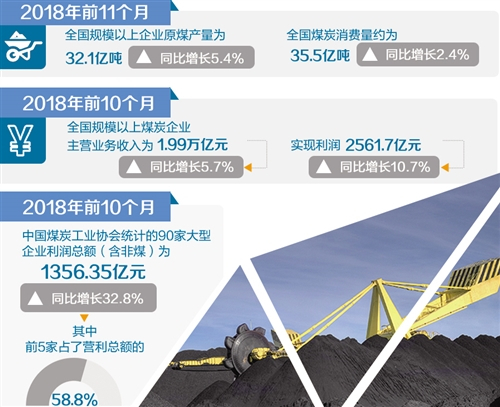 据初步测算,2018年前11个月,全国规模以上企业原煤产量为32.1亿吨,同比增长5.4%;全国煤炭消费量约为35.5亿吨,同比增长2.4%。