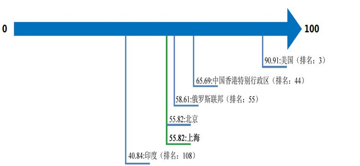 下图为在上海与可比经济体办理“破产框架力度指数”评估结果: