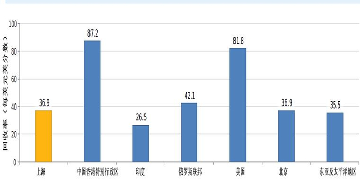 影响中国排名最大的因素,则是回收率。在上海,回收率仅为36.9%,而香港和美国则分别高居87.2%和81.8%。