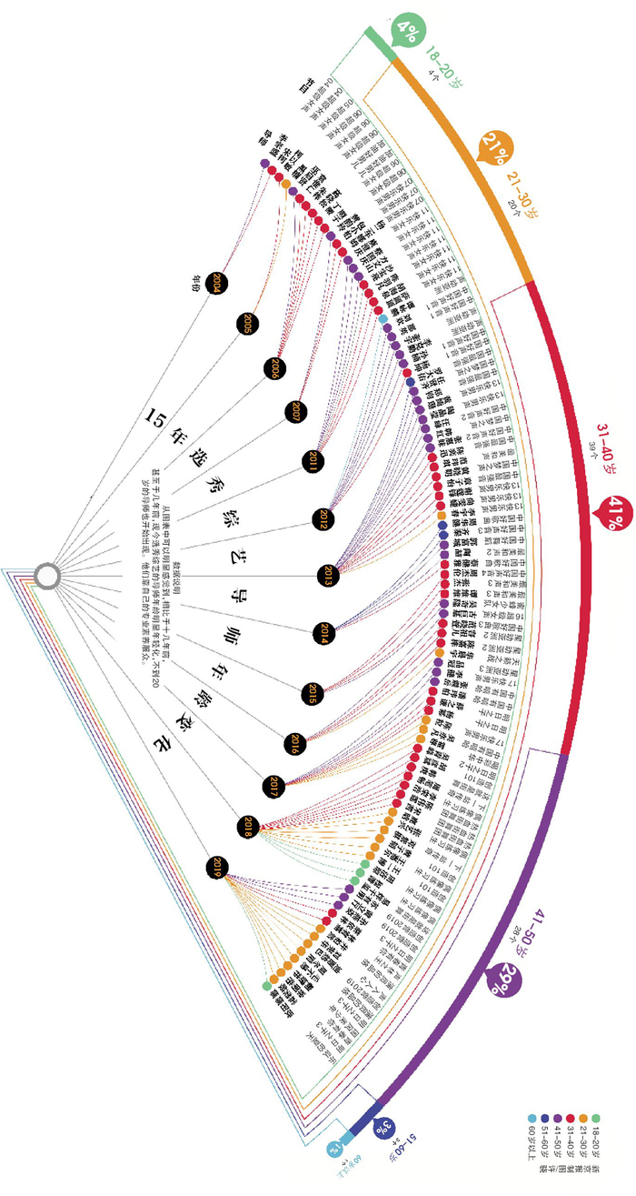 新京报统计了近15年来的选秀综艺的导师年龄,明显有越来越年轻之势。(请点击放大)