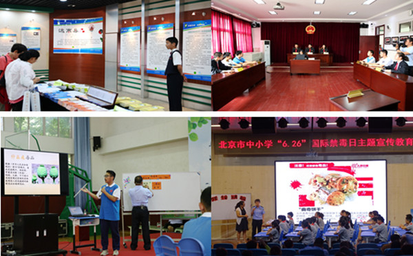 活动分为中小学法制教育成果展示、优秀教学课例观摩和大会交流三个环节。在中小学法制教育成果展示环节,作为大兴区法制教育基地的孙村学校,通过学生讲解、模拟法庭和法制教育展板等形式,展示了学校开展法制教育,尤其是毒品预防教育的工作成果。在优秀教学课例观摩环节,孙村中学初二年级的学生和朝阳区芳草地国际学校朝丰分校五年级的学生们通过毒品预防教育课和主题班会进行了精彩的课堂学习展示。北京市强制戒毒所的领导和学生家长也积极参与课堂教学活动中,充分展示了学校、家庭和社会合力育人,共同开展毒品预防教育的良好态势。