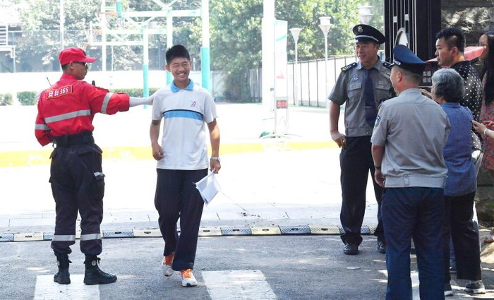 10点37分,第一名走出考场的考生表情轻松。新京报记者 李木易 摄