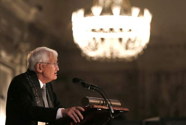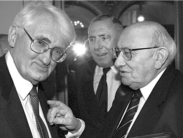 “三位老先生形成一个自我指涉系统……”1999年黑森州文化奖得主:于尔根·哈贝马斯、西格弗里德·温塞尔德和马塞尔·赖希-拉尼茨基。