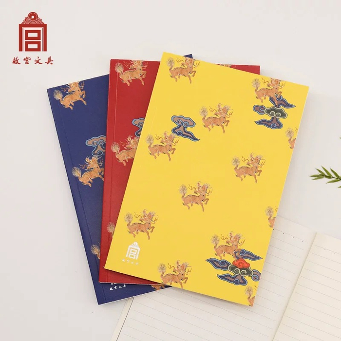 故宫文具是人民日报社和故宫博物院联合打造。在故宫文具旗舰店中,商品种类包括练习本、笔袋、便签、橡皮、零钱包等种类,故宫馆藏的瓷器纹样、建筑彩绘、吉祥瑞兽、牌匾题字、名画元素,例如《千里江山图》、《海错图》都被融入其中。从目前已经售出的商品的“买家秀”以及文字评价来看,网友对这位“六阿哥”颇为满意。比如,单价18.8元、一套80元的“金榜题名”笔记本,上面的麒麟图案来自于《清代蓝色缎金线绣花麒麟图挂屏》。