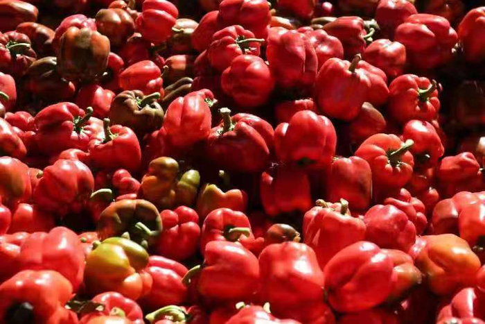 堆成小山一样的彩椒。新京报记者 王颖 摄