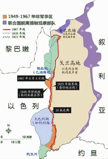 通过1967年的六日战争和1973年的第四次中东战争,以色列击败叙利亚,掌控了戈兰高地。 1974年5月31日 双方达成协议,以色列军队撤离戈兰高地东部的一狭长地带,让出库奈特拉城。并设立一条1.92至5 .76公里 的缓冲地带,由联合国派部队进驻。随后,以色列在戈兰高地占领区内陆续修建了数十个犹太人定居点。