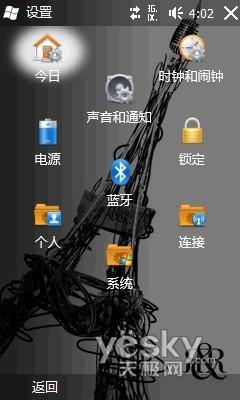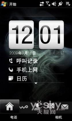 虽然T5388采用的还是WM6.1的系统,并没有采用微软最新发布的WM6.5系统。但是为了避免很多智能机初级用户在一接触到智能机,就被上面复杂的界面搞糊涂而产生畏惧心理,所以界面上除了华丽至极的的Touch Flo 3D得以保留以外,多普达将T5388的界面改为更为直观的方式,这种方式可以说是借鉴了WM6.5的界面,做到以最少的步骤达到最完美的表现。当然高级用户也可以在每个界面中找到之前WM系统的界面,方便自己调试使用。