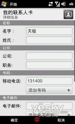 联系人界面不再是单调的纯名片式,而是采用大头贴的方式显示。并且将新建联系人添置在界面最上方,方便快速录入信息。而与之前不同的是,机主的联系卡也加入了联系人界面,并且可以以蓝牙等形式发送出去,作为商务手机,这个商务电子名片式的设计实在是很人性化。
