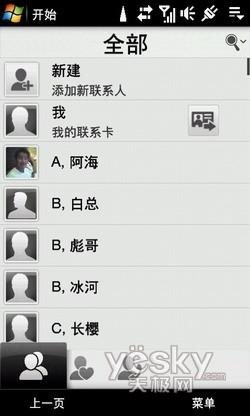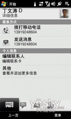 People Centric,以人为本。当选择任一个联络人后,他和你之间的通话纪录、Email往来和短信信息都可以在简单的几个界面进行浏览,比起之前WM手机需要和某个联络人的互动信息总是要在几个功能界面找来找去相比,实在是方便了太多太多!