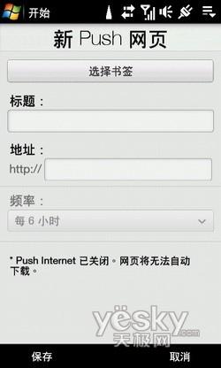 Push Internet,编辑个人认为和Push Mail可以算是比较相近的功能。 Push Interne可以设定想要浏览的网址到其设定页面,然后设置多久自动更新一次,手机就会将这个网站的适时信息更新下来,在下一次登录该网站时就会是实时信息,比起即时的网页信息更新,Push Internet更节约了上网的时间,提高了上网效率,配合WCDMA超高的网速,手机上网终于也成为了一个新的享受。