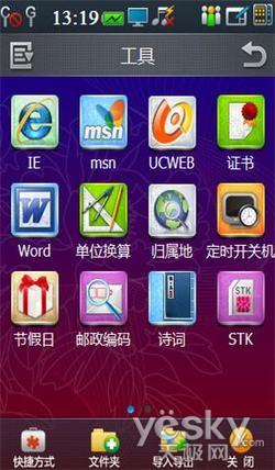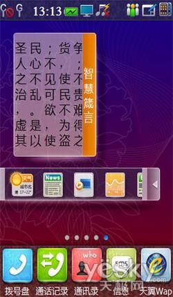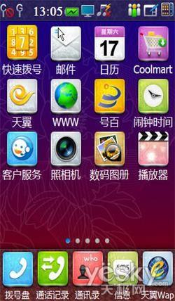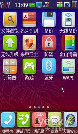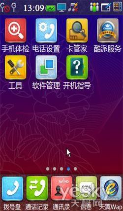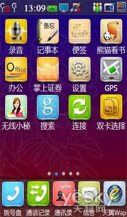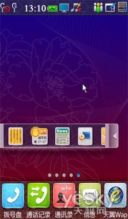 在菜单一和菜单二,一些主基本的功能都集中在这两个菜单,此外还有部分电信定制菜单。在主菜单的下方是固定常用菜单,诸如拨号面板、通话记录等都设置于此,方便用户随时调用。