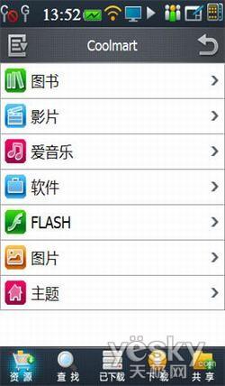 在UI主界面方面,酷派N900+设计了5个主要页面,主要有娱乐影音、办公、工具、管理、自定义菜单等五个界面。由于采用了触屏操作,图标刚好符合指尖操作的习惯,因此单手操作也十分方便。