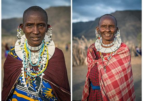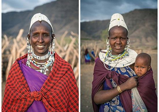 马赛人喜欢戴着一串串项链来装扮自己,耳垂几乎都到了肩膀处,他们非常热情地欢迎了这位30岁的罗马尼亚摄影师。