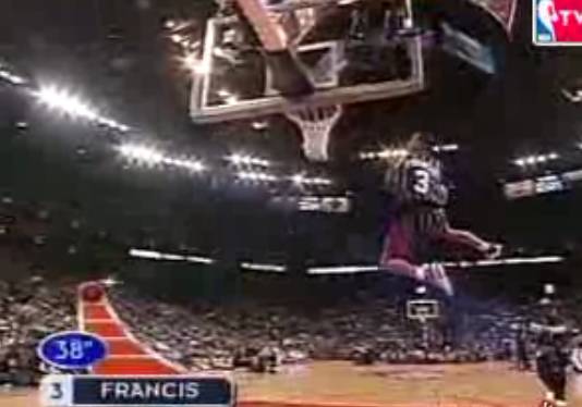 弗朗西斯的桀骜有他的资本,在火箭队的第一个赛季,弗朗西斯就砍下了场均18.0分5.3篮板6.6助攻1.5抢断,与布兰德共享了年度最佳新秀的奖项。而在这之前,弗朗西斯还在扣篮大赛上好好的秀了一把。