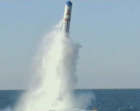 巨浪-2试射图片,本文认为导弹头部字母是巨浪的拼音首字母