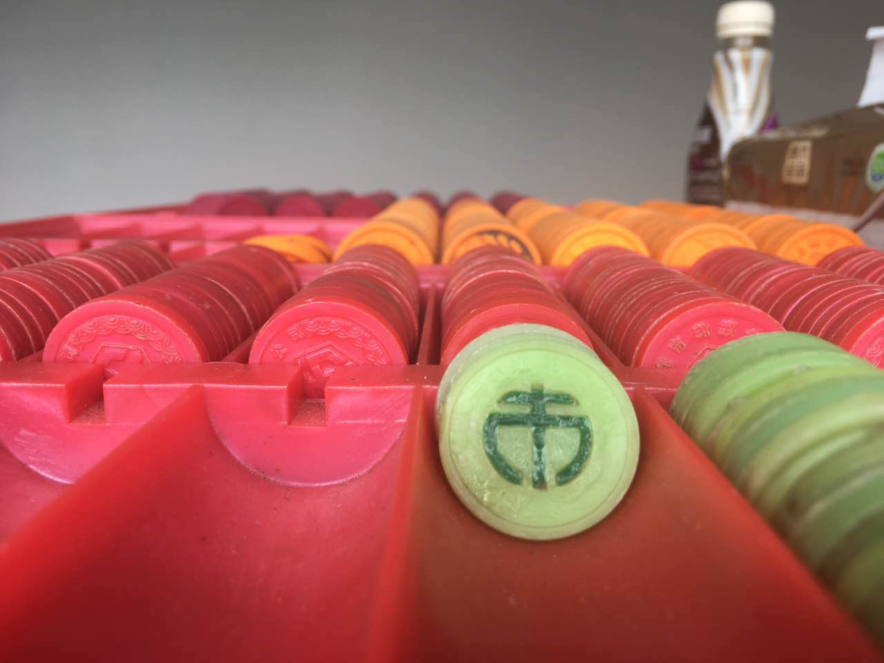 轮渡站仍在使用的筹码:绿色是1元,橙色是2.8元,红色是3元。 黄尖尖 摄