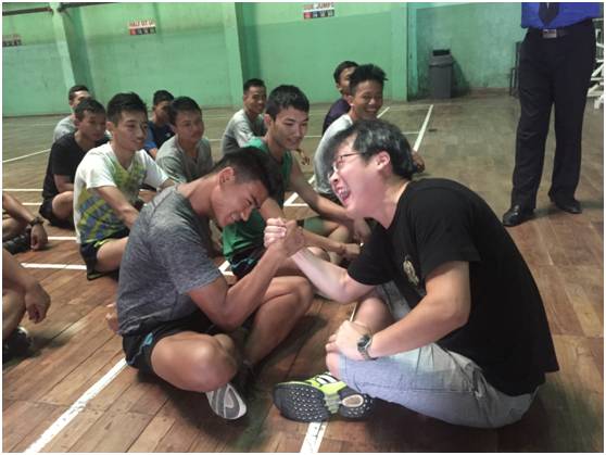 《环球时报》记者与其中一名学员掰手腕