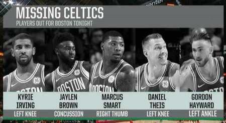 3 月 11 日:(丹尼尔)泰斯膝盖半月板撕裂;马库斯(斯马特)手指韧带受伤;凯里(欧文)由于膝伤被迫停赛