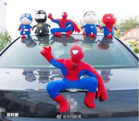 【成都交警:车顶放玩偶属交通违法 罚款扣分!】3月22日,成都交警在二环路万年场路口,对车顶上安装了以蜘蛛侠、蝙蝠侠、超人、僵尸等造型为主的玩偶的行为进行整治。半个小时内,就有四辆车被责令取下玩偶↓↓↓