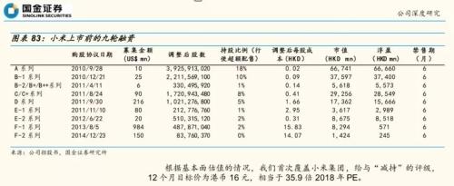 据此前小米集团向港交所递交的招股书显示,上市前小米曾进行9轮融资。据媒体报道,启明创投、IDG资本、新加坡主权基金GIC等投资机构拥有小米近三成股份,且入股成本价较招股价17元折让17%至99.9%不等,获利空间巨大。
