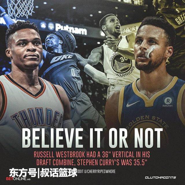 北京时间2月19日,美媒体公布了库里和威少部分刚进入联盟时的体测数据。其中在垂直弹跳这项数据中,库里为35.5英寸(90.17厘米),威少为36英寸(91.44厘米),两人差距甚微。想必这让很多球迷难以置信,作为NBA中的冕扣之王,库里生涯至今也只扣篮25次(包括昨天的全明星赛),不过库里的身体素质真的有看上去那么弱吗?