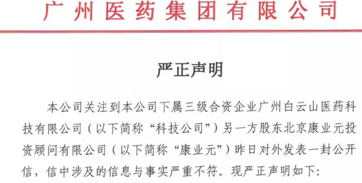 这一点,广药集团旗下A股上市公司白云山于2019年7月26日晚发布的《关于媒体报道有关情况的说明》公告也做出回应: