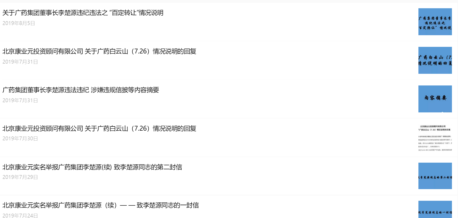 自2019年7月下旬,北京康业元投资顾问有限公司(以下简称“康业元投资”)先发近10封所谓公开信,“开撕”广药白云山[股评]。