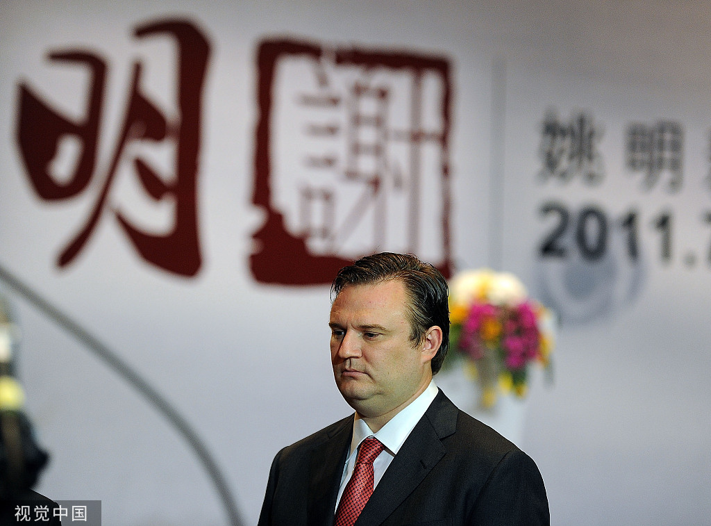 资料图:2011年7月20日,姚明退役发布会在上海举行,莫雷出席 图自视觉中国