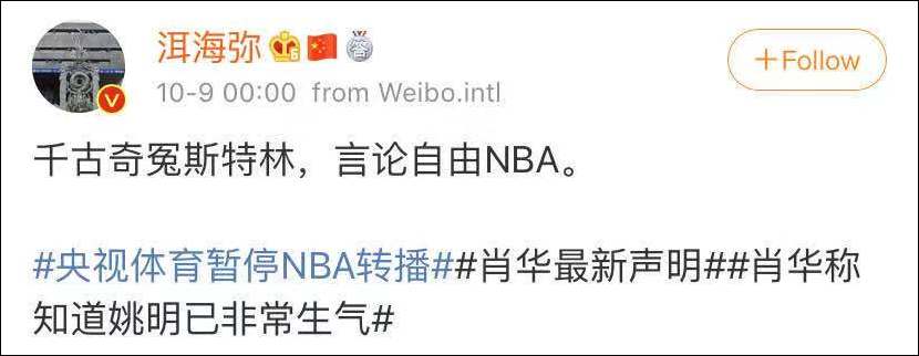 对于莫雷造成的危机,肖华一直以“支持言论自由”为幌子,不予道歉。时至今日,他依然嘴硬,甚至试图对NBA此前的官方表态作出“新的解释”。