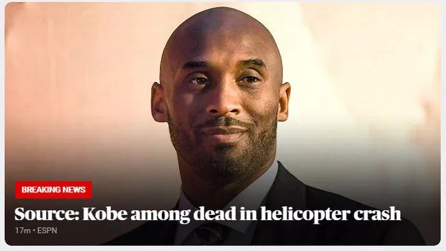 NBA天才球星科比·布莱恩特(Kobe Bryant,1978年8月23日-2020年1月26日)今晨因直升机失事在洛杉矶遇难。机上还有科比最有蓝球天赋的13岁大女儿。