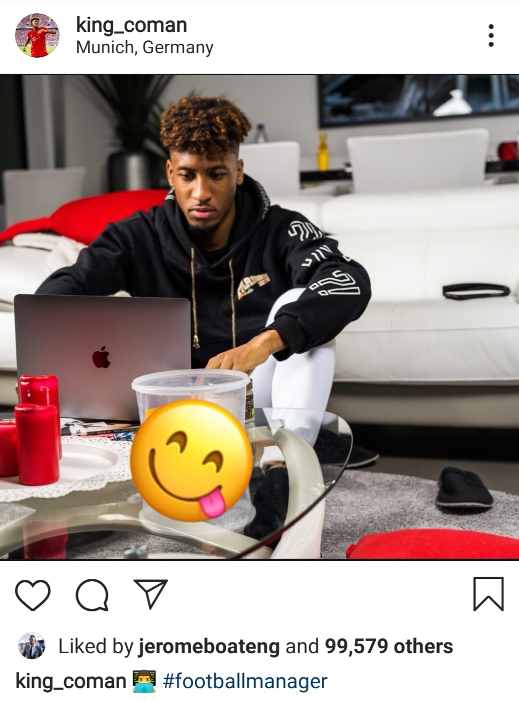 足球经理也是球员的宠儿。拜仁球员金斯利·科曼隔离期间玩足球经理游戏的画面也出现在了社交网站上,很多球迷也上传了自己打游戏时出现的有趣场景,这其中就包括一些球员感染了病毒被要求在家休息15天……