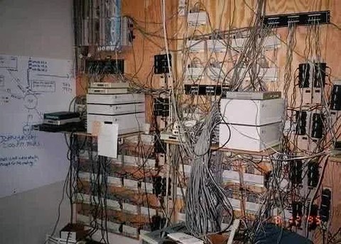 前面三个机笼里,右边是 AuctionWeb 的 Sun 服务器,中间为 Fatbrain 所拥有,左边是一家叫 Hotmail 的初创公司的服务器。当我们的服务器需要人前去设置时,我们就经常会碰面。