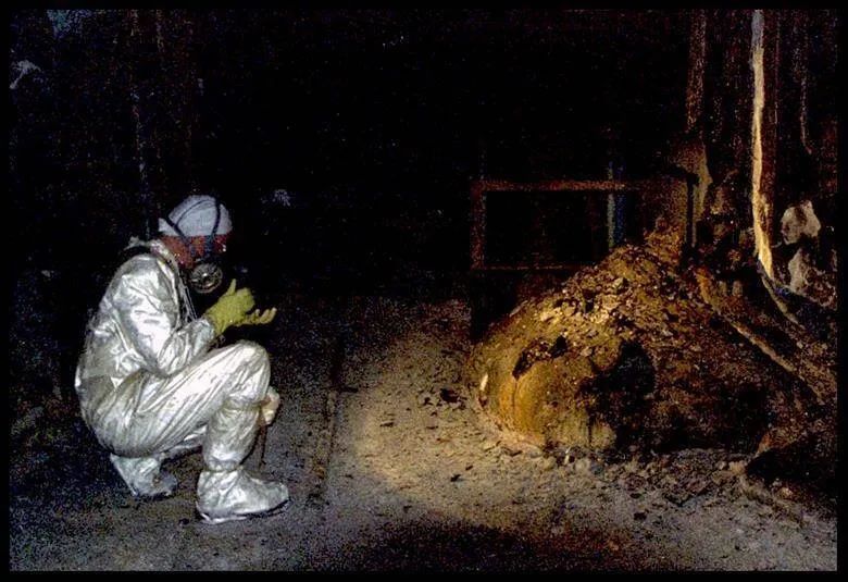 当年的12月份,调查人员冒着危险来到灾难现场时,看到一幕怪异的景象:一堆灼热的熔岩状物质一路烧到事故发生地的地下室,最后在那里凝固。因为独特的形状和颜色,这个庞然大物被命名为“大象腿(Elephant’s Foot)”。