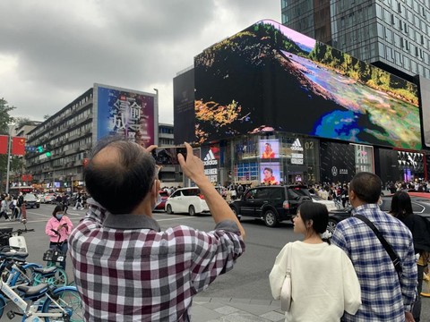 “大概每隔十分钟,就有一分钟左右的裸眼3D效果,太真了,播放时间再长点就好了,不过瘾。”10月2日下午五点二十分左右,在成都太古里对面春熙路银石广场旁楼顶上,一艘巨大的飞碟从墙内“飞了”出来。路过该处的行人,不少都停下了脚步抬头仰望,还有人赶紧掏出手机录视频。