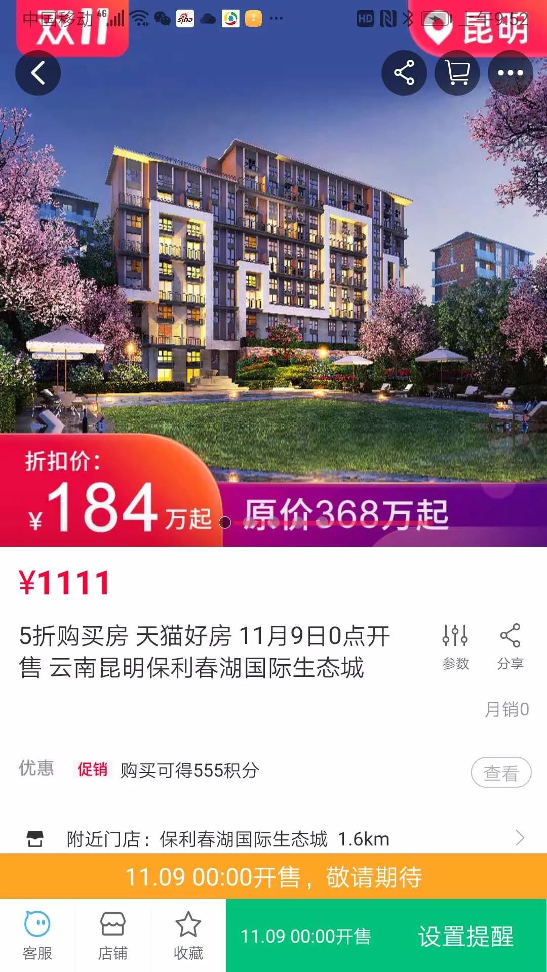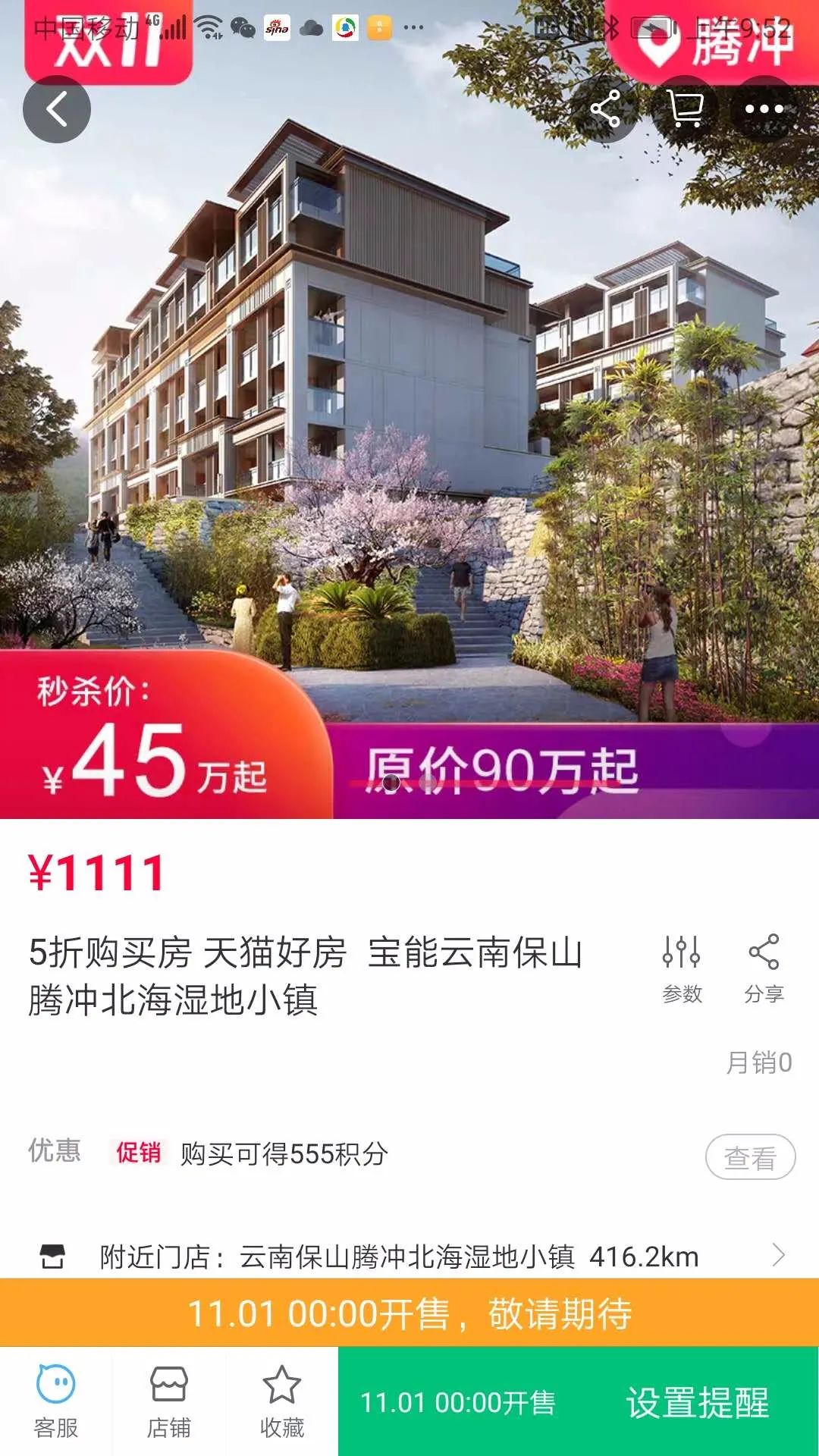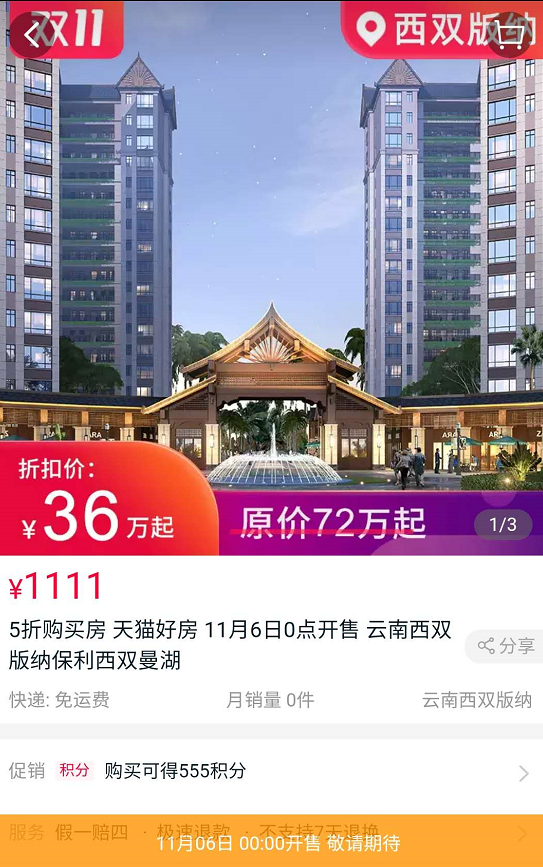 春城晚报-开屏新闻记者注意到,在5折秒杀的活动中,云南腾冲、西双版纳、昆明等地的一些房源都有出售。时间从11月1日~9日零点开始,5折开售。