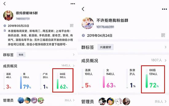 在《很纯很暧昧》的其中一个QQ群中,成员总数超过1400,“00后”成员比例达62%,约900人。而在《不许拒绝我》的粉丝群中,总数超过1800人,“00后”占72%。他们会在QQ群里讨论漫画故事,分享考试相关信息,成员之间还会分享色情小说。