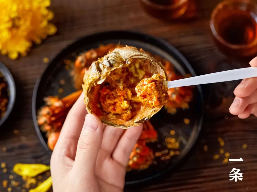 不像尾期的公蟹,肉柴、只有糊嘴的蟹膏,少了些许蟹黄的鲜美。
