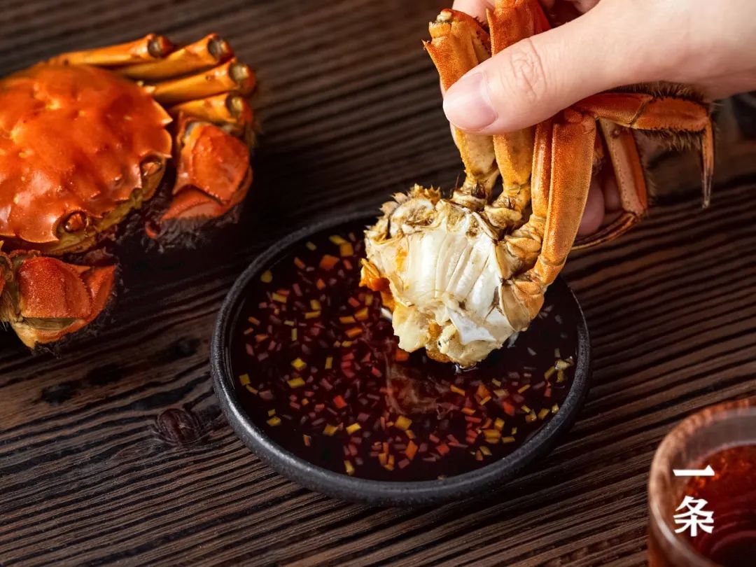 若是觉得这原味的大闸蟹不够劲儿,稍蘸些附赠的秘制蟹醋,酸甜的滋味更加激发了大闸蟹的味觉层次,口感丰富又悠长。