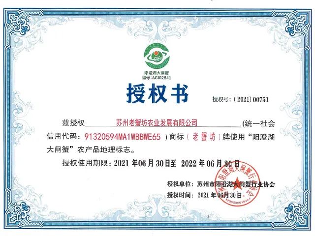 这个蟹扣可不是随便一个阳澄湖大闸蟹品牌都能拥有的,首先必须是阳澄湖大闸蟹行业协会授权过的企业。