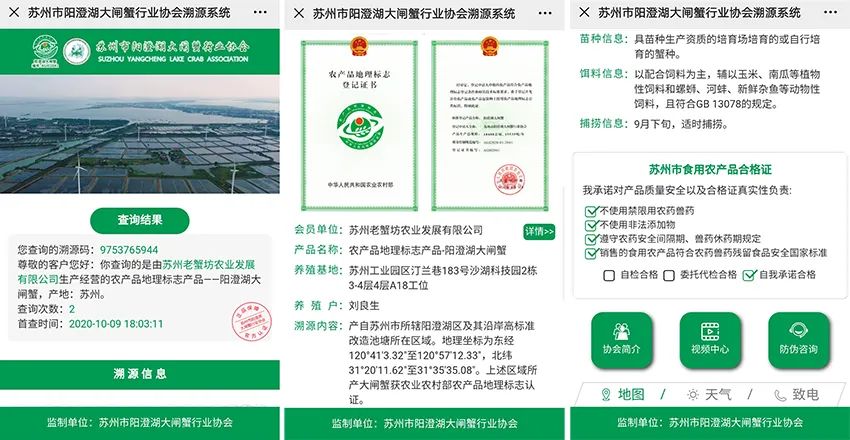 可以扫描蟹扣背面的二维码追溯源头,扫描后可以看到追溯码、企业登记信息、养殖基地、养殖户等相关信息,让人放心。
