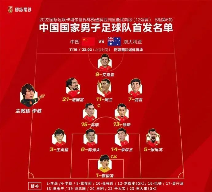 本场比赛前,中国队五场比赛积4分排名小组第五,想要保留出线希望必须争取胜利。国足主教练李铁首发派出艾克森、阿兰、洛国富和武磊四名前锋,全力放手一搏。