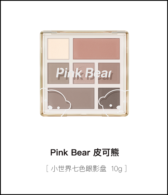轻欧美妆一定要色彩浓重的眼影盘吗?No!普通的大地色眼影盘也完全可以hold住哦~Pink Bear这款眼影盘,配色上选择了百搭的大地色系。质地软糯,上色丝滑,不易飞粉。一共七个色号,涵盖哑光、珠光、微闪,百变妆容轻松拿捏。姐妹们赶紧get起来呀!