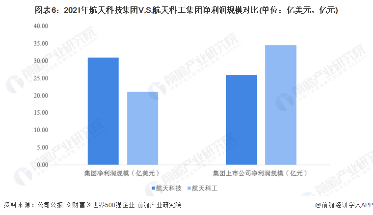 根据2022年《财富》世界500强企业名单统计,2021年航天科技和航天科工集团利润分别为30.99亿美元和21.08亿美元,两集团旗下上市公司营收净利润分别为25.98亿元和34.54亿元。在集团净利润规模层面,航天科技略胜一筹,但在集团旗下上市企业净利润规模层面,航天科工略领先。