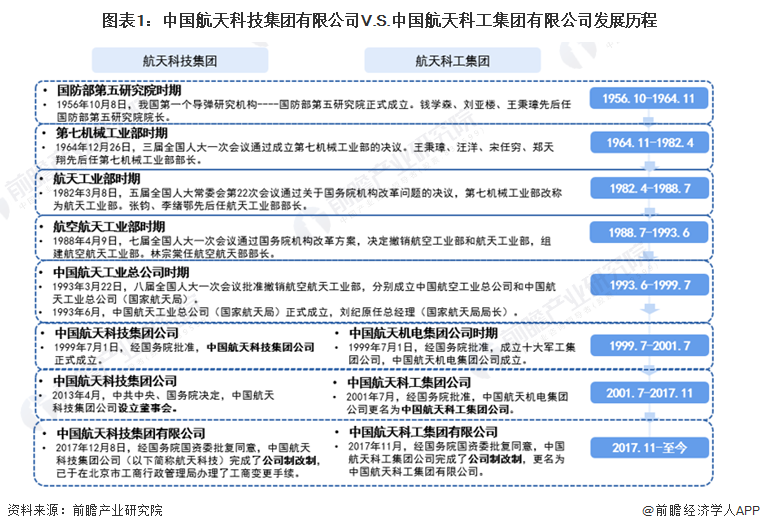 1999年之前,中国航天行业主要隶属于国家部门,1999年之后,经国务院批准,中国航天行业划分为航天科技和航天科工两大集团,2017年企业完成公司制改革,成为中国航天行业生产主要央企集团。