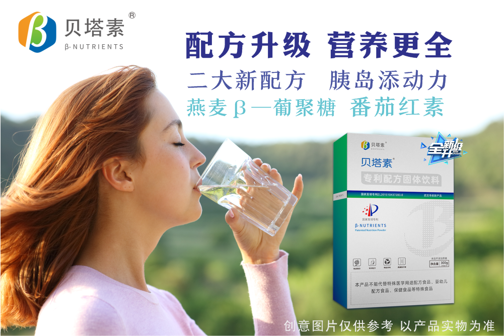 ②配方升级:第二代“贝塔素”特别研发添加燕麦β—葡聚糖、番茄红素两类物质双向调节血糖,促进细胞代谢。